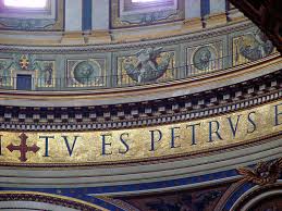 Así quiero evocar hoy, con cariño por lo que ha sido, sin polémica, ofreciendo un recorrido por todo el Nuevo Testamento, iniciando así un camino que sigue recorriendo la Iglesia, con el Papa Bergoglio, que quiso llamarse Francisco, pero que se llama también Pedro,como supone la palabra escrita en la cúpula del Vaticano: Tu es Petrus, tú eres Piedra…(cf. imagen)