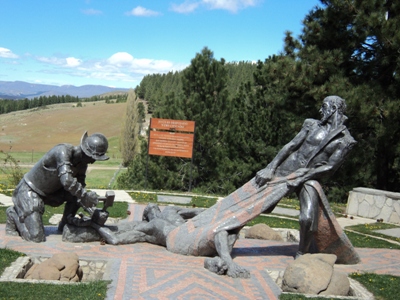Ahí nos encontramos con una sorpresa. Este hermoso pueblo de turismo de pescadores de caña con mosca, tenía un monumental Via Crucis en un cerro que nos recomendaron visitar.