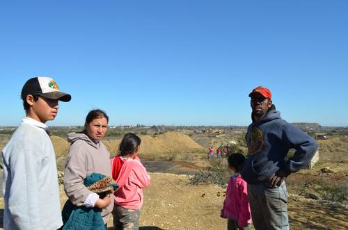 Todos los días nos paramos aquí para que no avance el tajo, dice Esmeralda Saldaña con un bebé en brazos mientras explica las alergias que padecen sus hijos luego de 13 años viviendo en este pueblo invadido por las minas de carbón. Cuenta que su esposo Pedro Martínez, se fracturó un pie al caer en uno de los hoyos dejados por la extracción de carbón. El mes pasado un minero murió sepultados en uno de los tajos donde trabajan sin prestaciones, vigilancia ni Seguro Social.