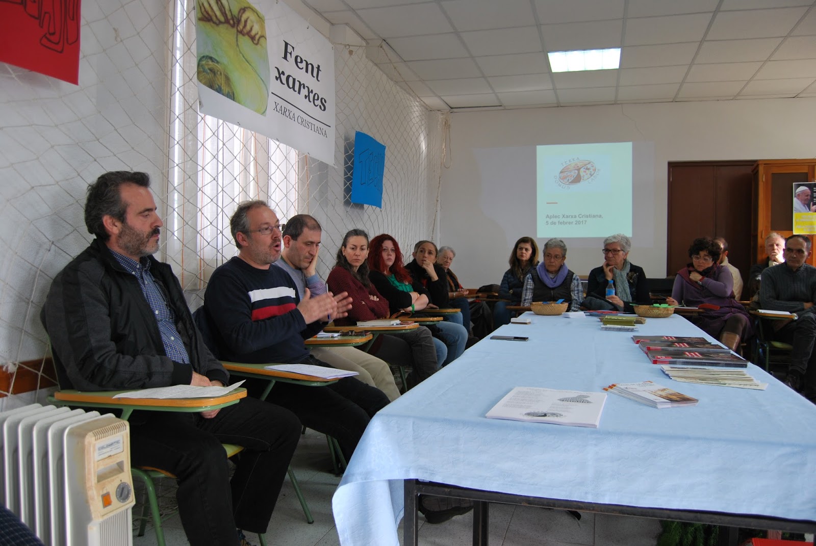 Hem celebrat l’Aplec anual de Xarxa Cristiana amb el lema «TERRA, TREBALL I SOSTRE», les tres T de l’Encontre Mundial de Moviments Populars promogut pel Papa Francisco. Amb això volem manifestar la nostra adhesió a la seva persona i el seu missatge, humanitari i evangèlic, en què seguim aprofundint.En l’actual context internacional, necessitat d’un canvi polític i cultural profund, considerem important valorar i difondre un missatge, amb la força i la radicalitat del de Francisco.En els seus documents, paraules i gestos, aquest Papa és profètic i fins i tot revolucionari. Davant d’aquest sistema capitalista neoliberal «que mata», Francisco interpel·la creients i no creients, aporta inspiració i orientació en la recerca d’una societat més justa i humana.El crit «TERRA, TREBALL I SOSTRE» compartit amb els moviments populars i la humanitat oprimida i exclosa, crida a construir, amb urgència, una nova economia, que pose en el centre la dignitat de la persona.Ens sumem a la seva esperança i la seva passió, que és la de Jesús de Natzaret, i ho hem celebrat amb «l’alegria de l’Evangeli», compartint i alimentant el nostre compromís per un altre món possible des de les xicotetes realitats en xarxa que es multipliquen.