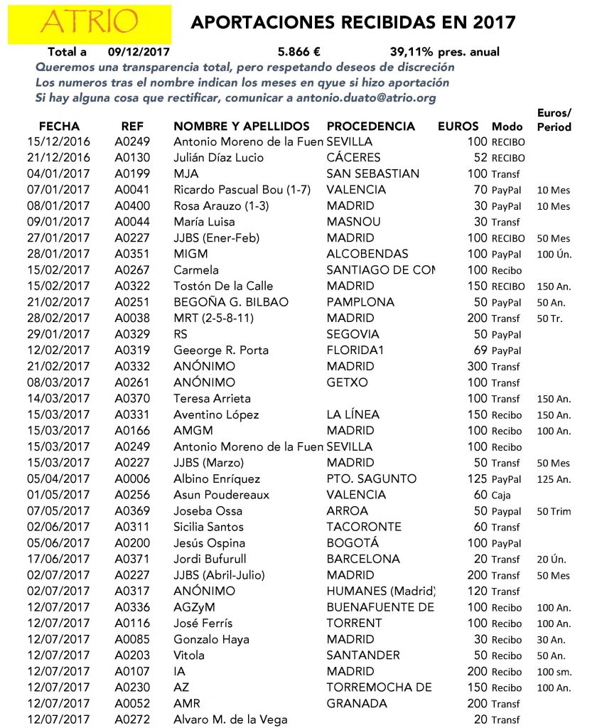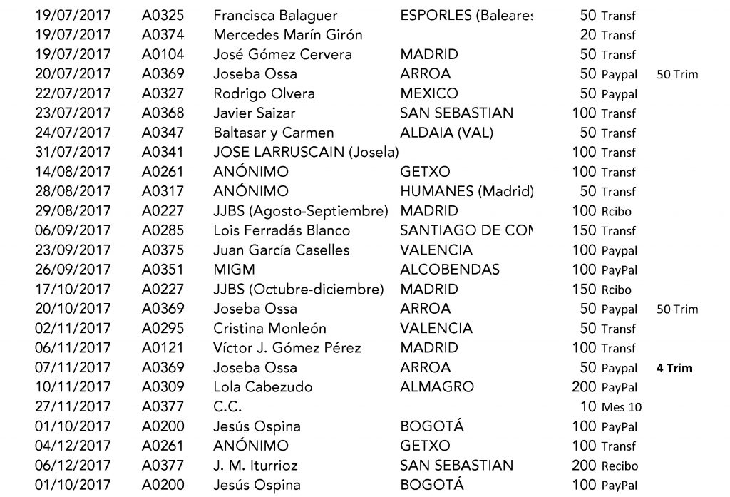 LISTA DE LOS DONANTES EN 2017 HASTA 9-12-2017: